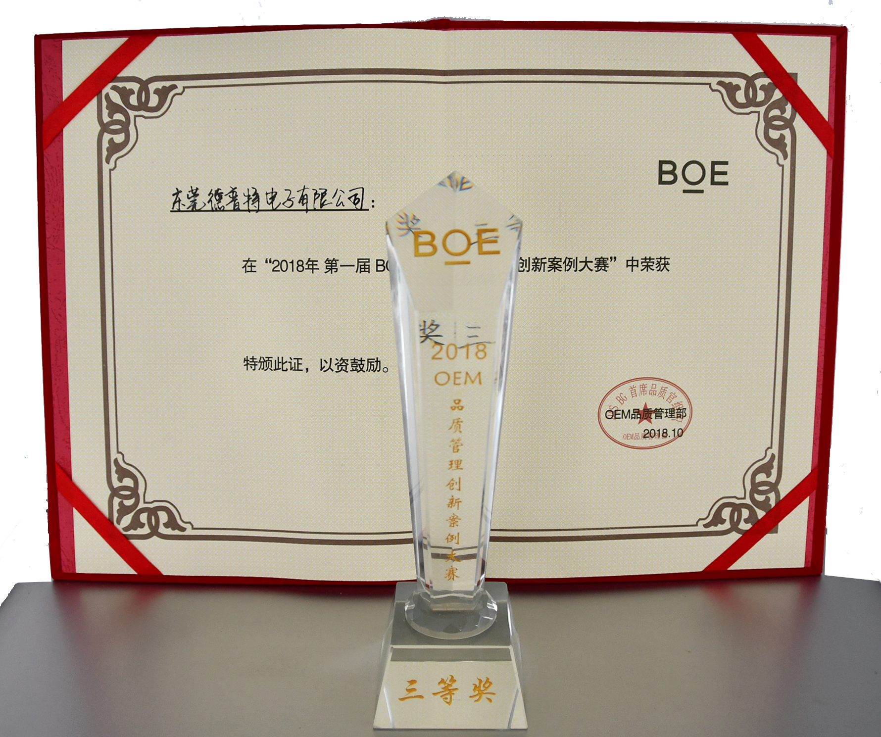 2018年第一屆BOE品質(zhì)管理創(chuàng)新案例大賽三等獎(jiǎng)