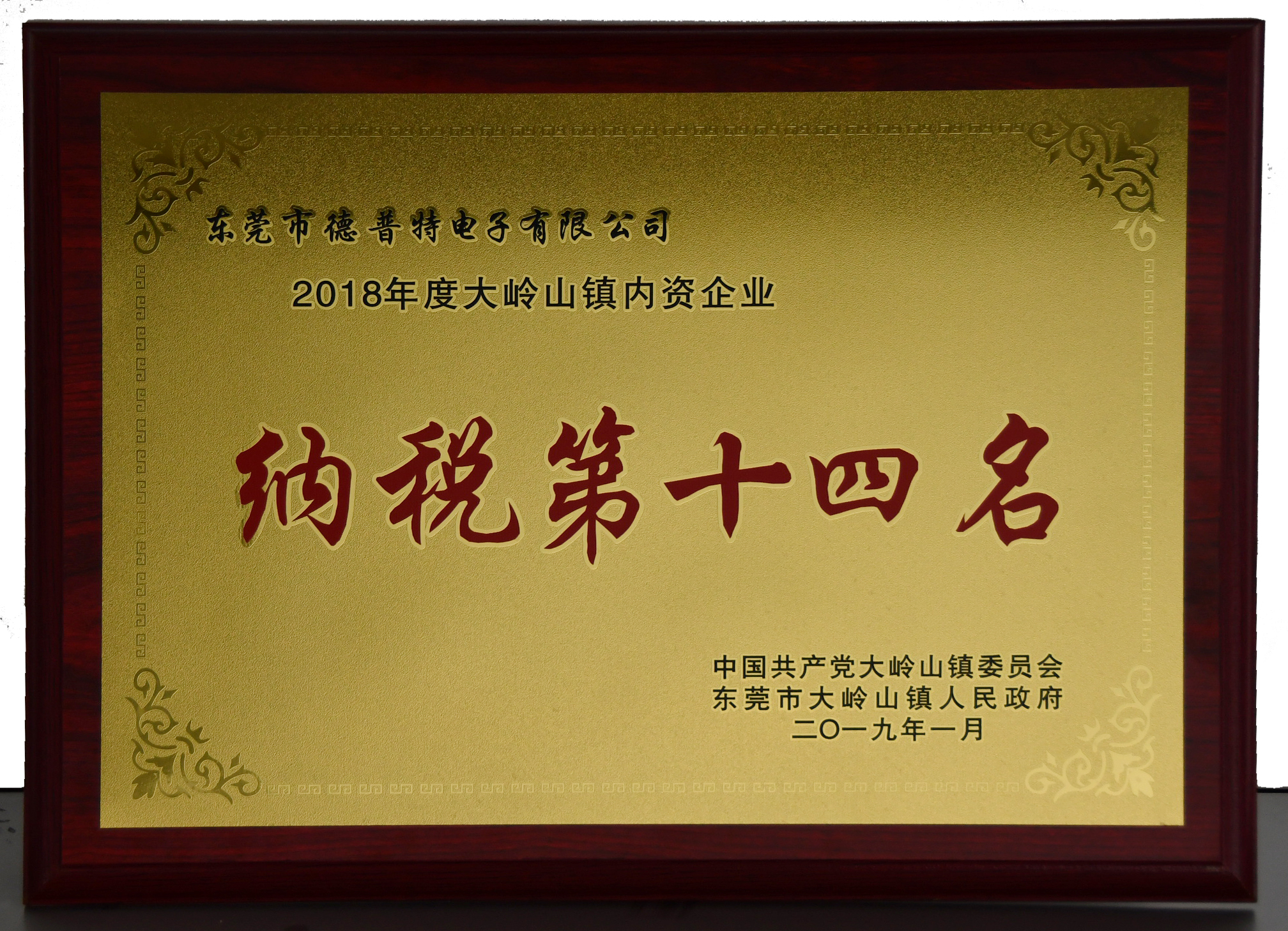 2018年度大嶺山鎮(zhèn) 內(nèi)資企業(yè)納稅第十四名